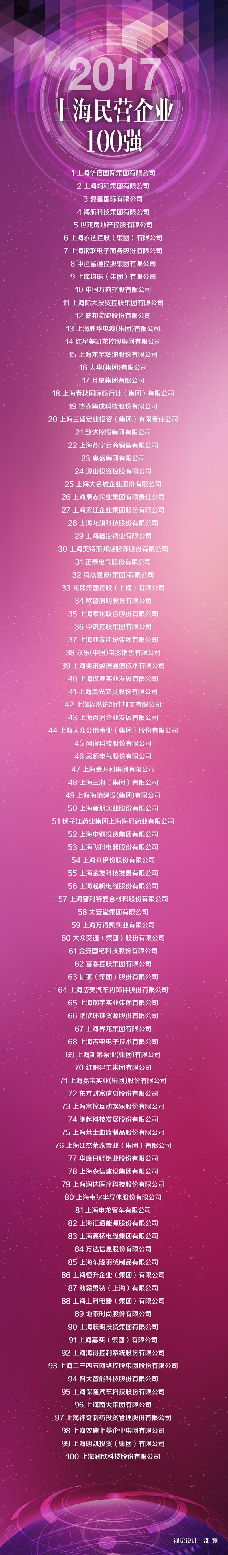 8月28日,由上海市企業聯合會、上海市企業家協會、上海市經濟團體聯合會聯合發布了2017上海企業百強榜。上海二三四五網絡控股集團股份有限公司(簡稱“二三四五”,股票代碼002195)榮登“上海民營企業100強”第93位, 成為上海本土互聯網企業備受矚目的中堅力量。