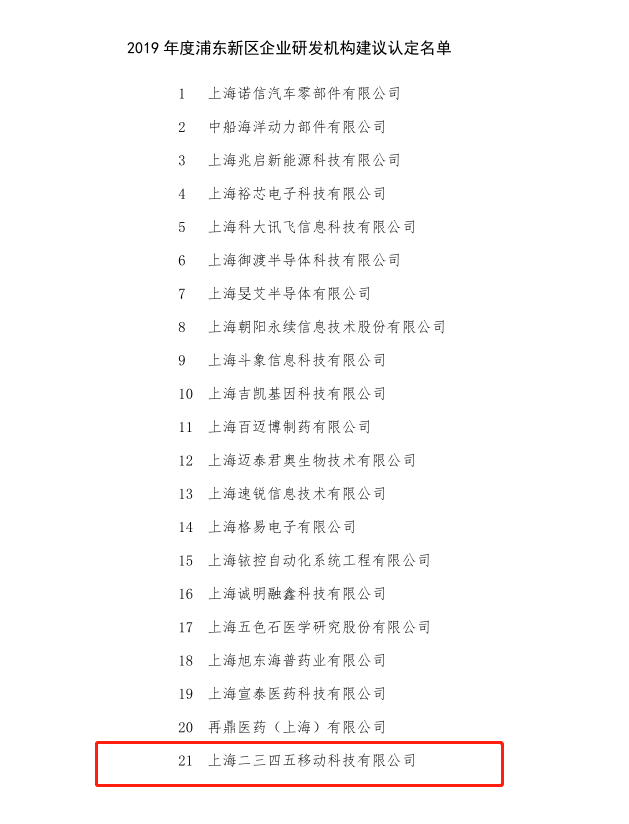 近日,上海市浦東新區(qū)科技和經(jīng)濟(jì)委員會(huì)“2019年度浦東新區(qū)企業(yè)研發(fā)機(jī)構(gòu)建議認(rèn)定名單”通過公示,經(jīng)嚴(yán)格審查,上海二三四五網(wǎng)絡(luò)控股集團(tuán)股份有限公司(簡稱“二三四五”,股票代碼002195.SZ)旗下子公司上海二三四五移動(dòng)科技有限公司被認(rèn)定為2019年度浦東新區(qū)企業(yè)研發(fā)機(jī)構(gòu),再獲政府部門肯定。
