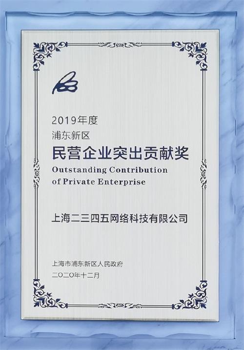 (二三四五榮獲2019年度浦東新區民營企業突出貢獻獎20強)