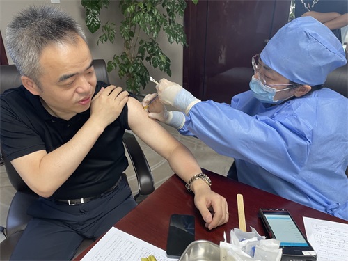 PS:咱們的管理者團(tuán)隊(duì)當(dāng)天也有積極參與疫苗接種哦~積極響應(yīng)國(guó)家號(hào)召,也為咱們員工做個(gè)榜樣,幾位管理者們率先接種了疫苗。下圖為公司董事長(zhǎng)陳于冰先生接種疫苗中~